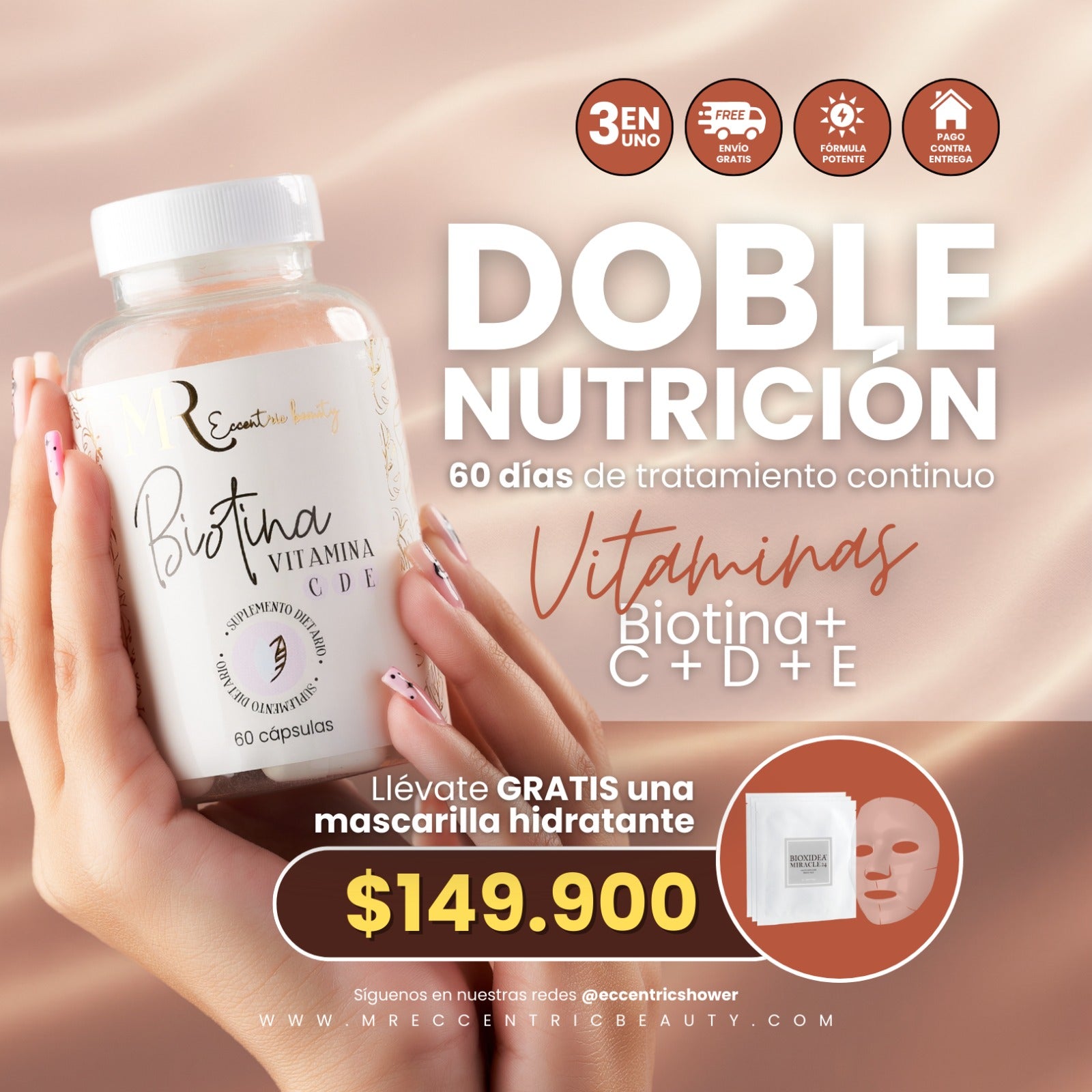 Esta fórmula apoya cabello más brillante, piel más luminosa y uñas más resistentes. No actúa por fuera: el cuidado real se refleja en todo tu aspecto.